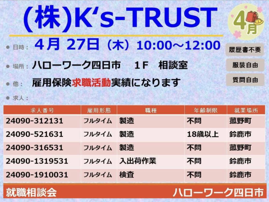 ハローワーク四日市にて、就職相談会を開催します。